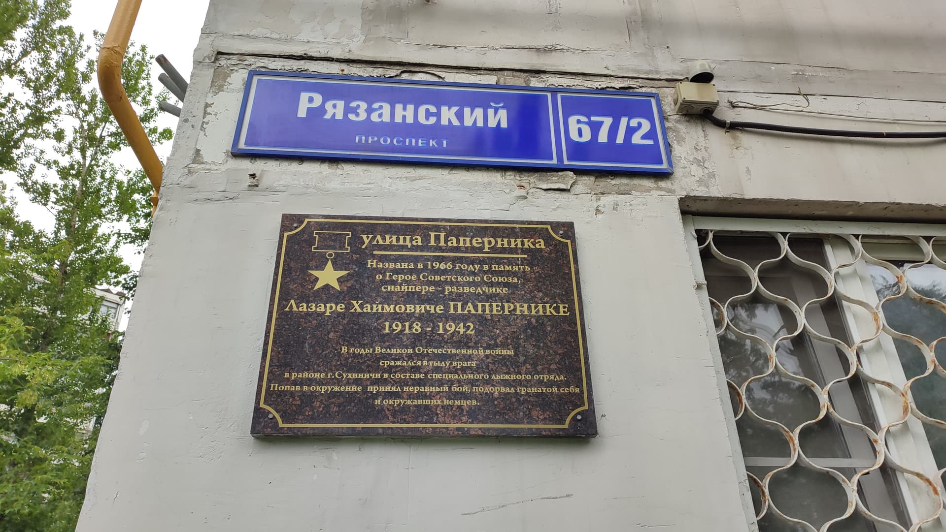 Улица получила название в память о снайпере-разведчике Лазаре Хаймовиче Папернике. На развилке с Рязанским проспектом в зеленой зоне на гранитном постаменте установлен памятный знак – бюст героя Великой Отечественной войны.