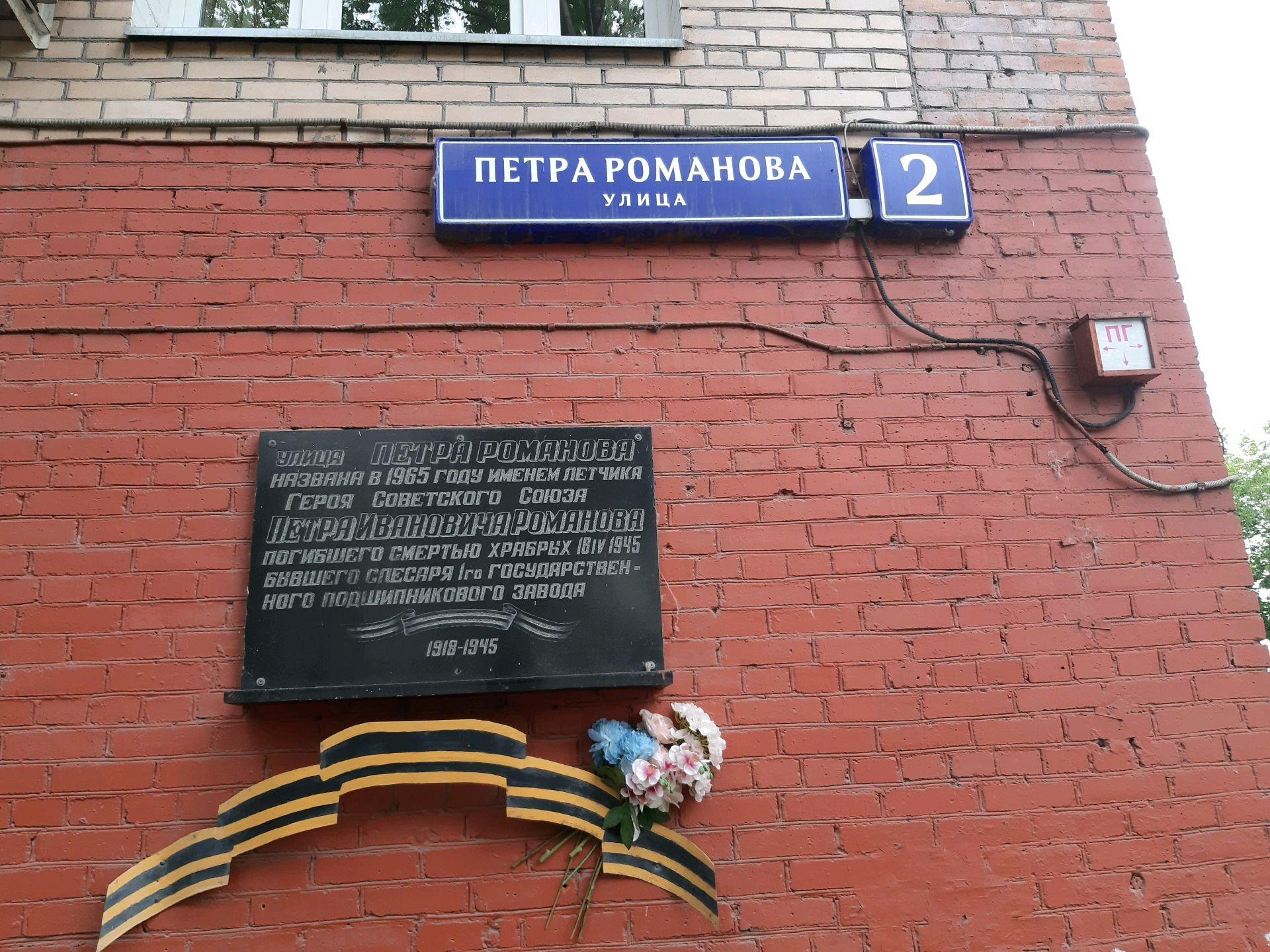 Улица, которая в 1950-е годы активно застраивалась домами по проектам военнопленных немецких строителей, называлась 8-й Кожуховской. Спустя десятилетие ее переименовали в честь летчика Петра Ивановича Романова. С инициативой дать улице имя героя Великой Отечественной войны выступили рабочие Московского подшипникового завода №1, где тот работал слесарем.