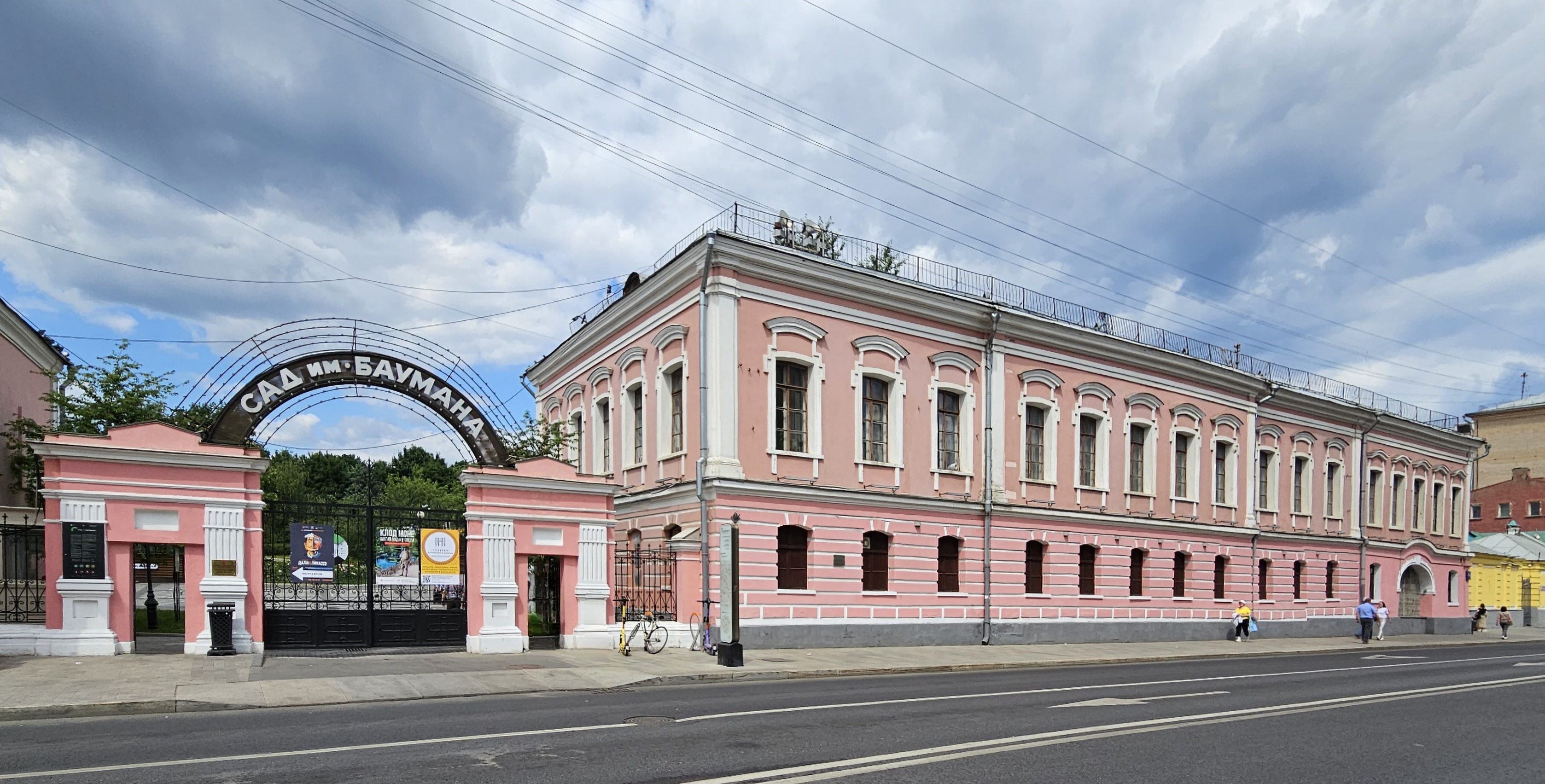 Украшением улицы и любимым местом отдыха жителей района служит Сад Культуры и Отдыха имени Н. Э. Баумана. Сад создан в 1920 году путём объединения в себе нескольких соседних усадебных садов XVIII-XIX вв., самый большой из которых принадлежал золотопромышленникам Стахеевым. История городской усадьбы Стахеевых послужила прототипом истории о 12-ти стульях в одноименном произведении Ильфа и Петрова. Сейчас в доме Стахеевых (Новая Басманная ул., 14) — Центральный дом детей железнодорожников. Также на территории сада в XIX веке находился дом, где свыше двадцати лет жил философ и общественный деятель, участник войны 1812 года, Пётр Яковлевич Чаадаев (1794-1856 гг.). Здесь его навещали Пушкин, Гоголь, Герцен, Тургенев.