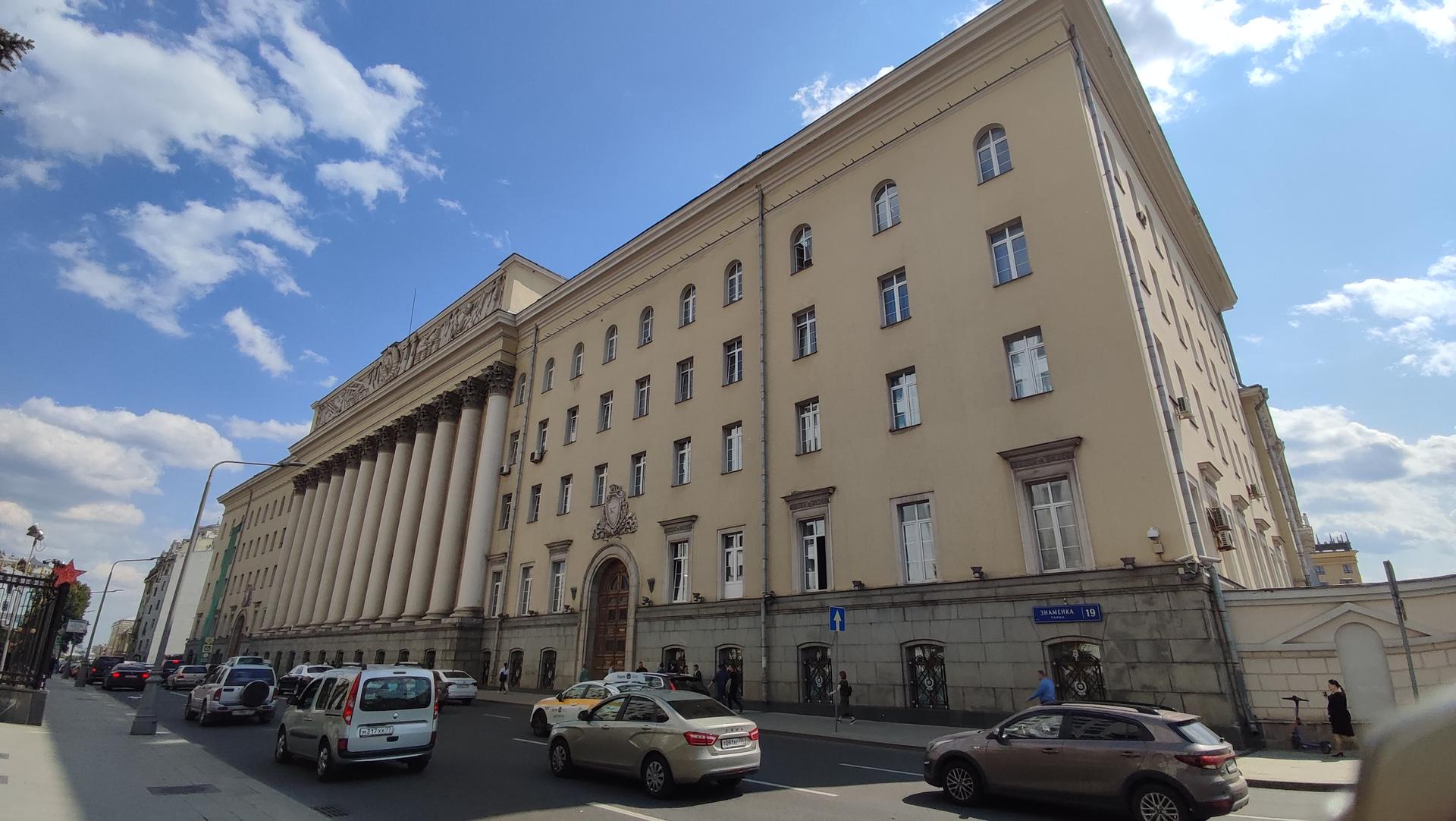 Жемчужиной ул. Знаменка был и остается великолепный дом-дворец П.Е. Пашкова, построенный предположительно по проекту величайшего московского зодчего В. Баженова. Фасад дома обращен к Кремлю, по Знаменке идет ограда и корпус Румянцевского музея, который располагался в усадьбе.