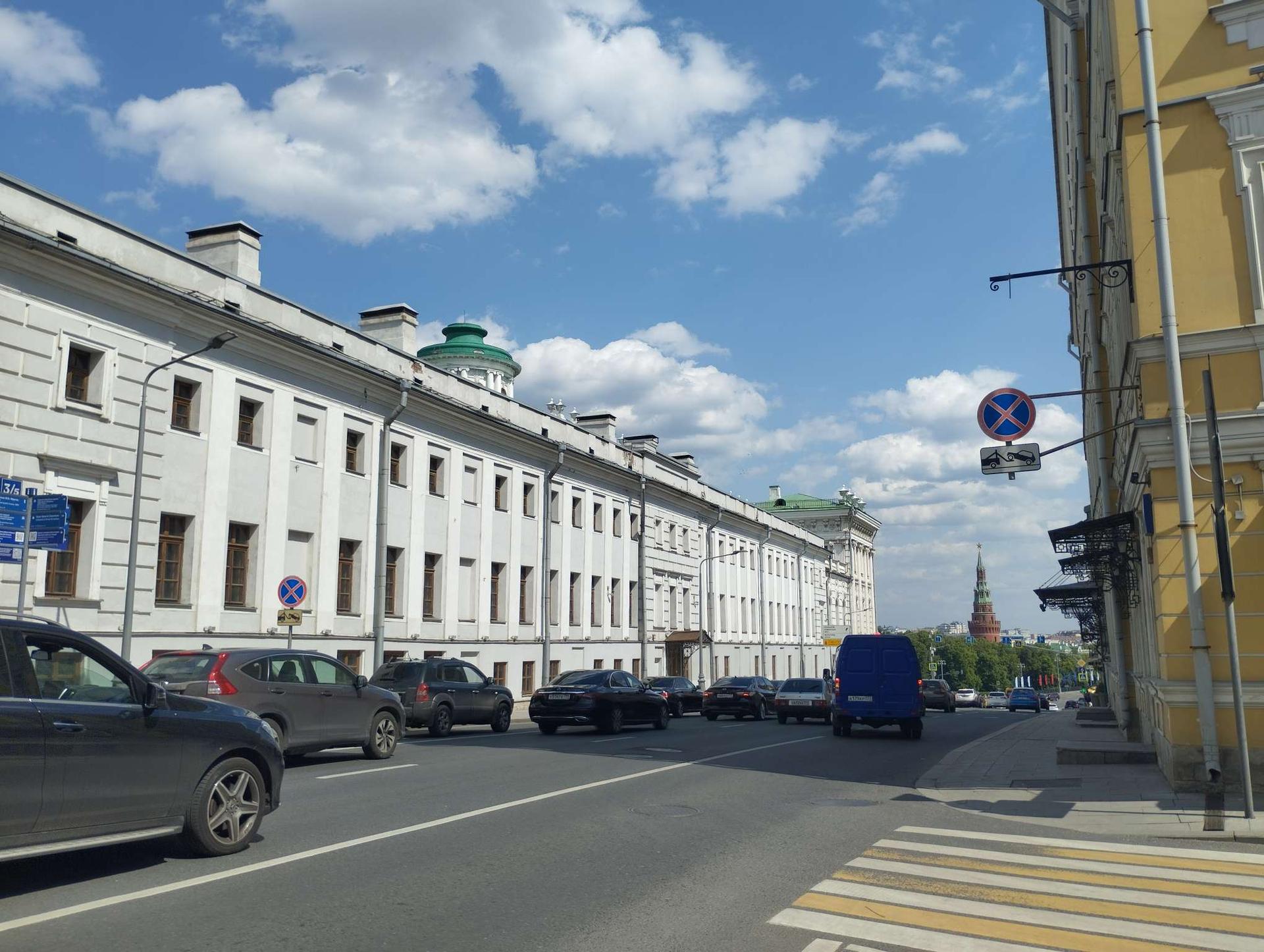 Знаменка начиналась у Боровицкого моста, переброшенного через Неглинную, имела пять приходских церквей и была застроена дворами Шуйских, Ртищевых и других знатных фамилий.