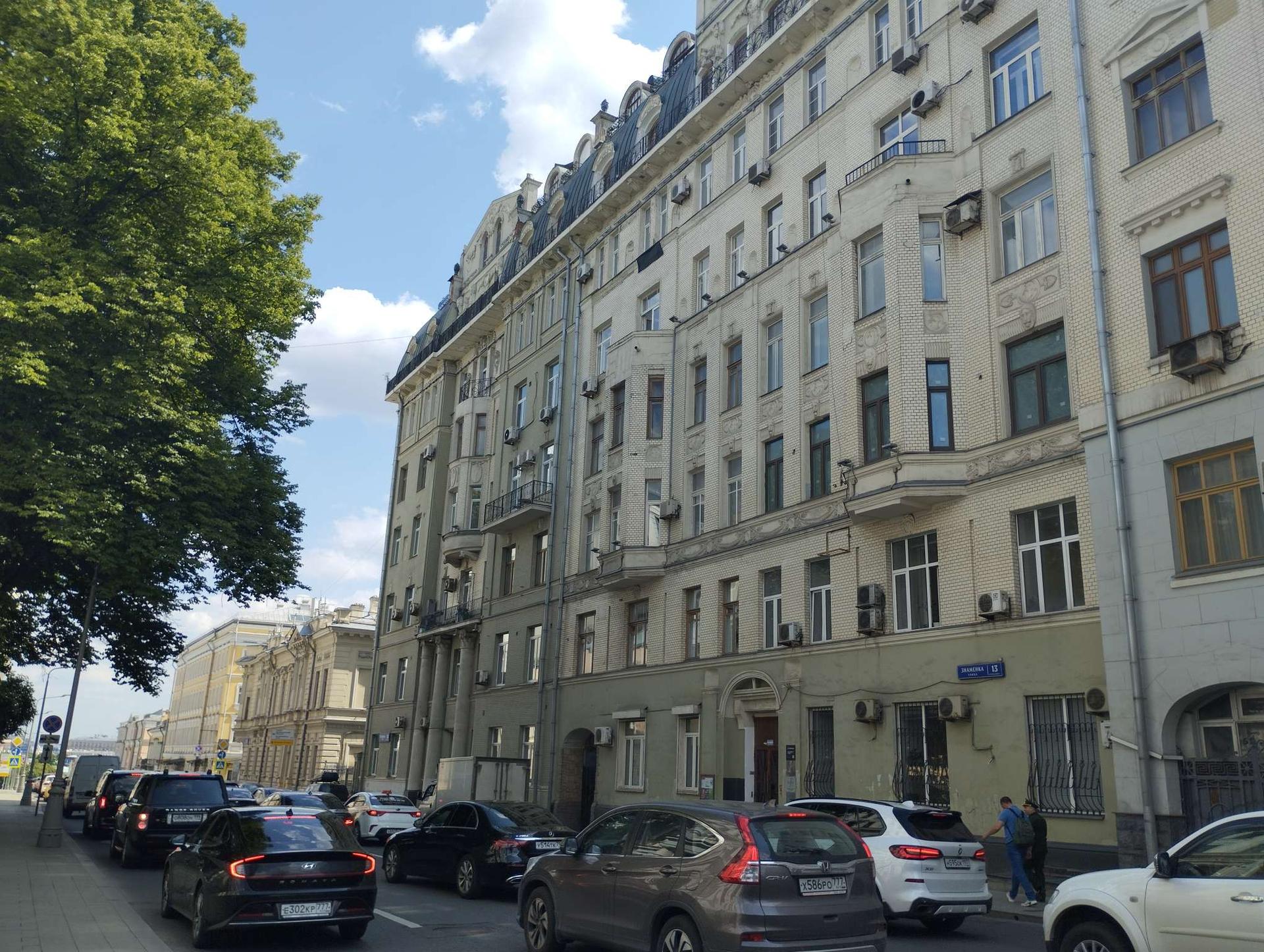 В конце XIX – начале ХХ века на Знаменке выросли многоэтажные доходные дома, состоящие из нескольких корпусов. Доходный дом А.И. Шамшина.