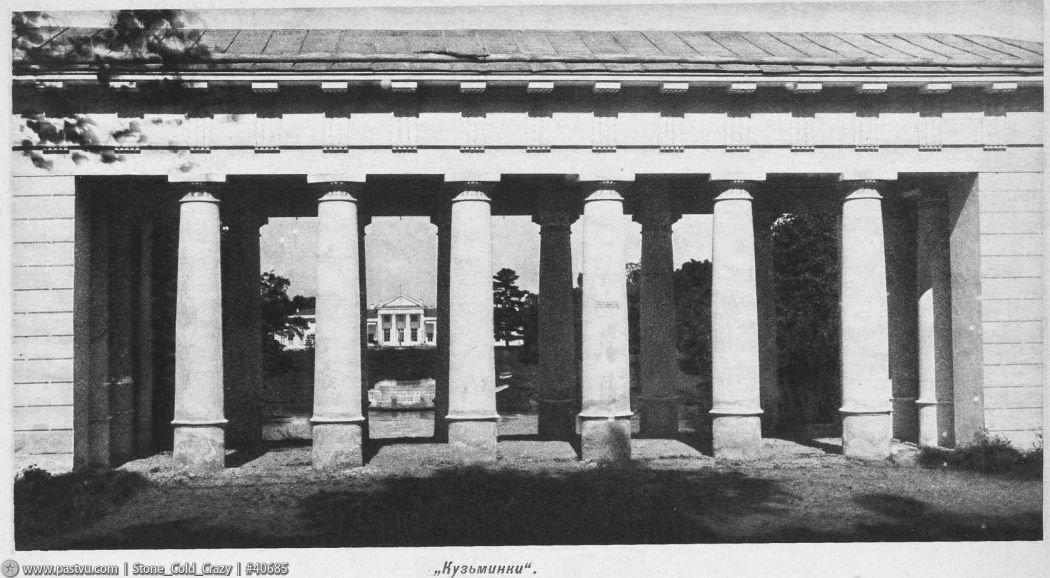 В 1716 году здесь был построен деревянный храм, освященный в честь фамильной иконы Строгановых – Влахернской Божьей Матери. Храм Влахернской иконы Божьей Матери перестраивался три раза, к 1785 его перестроил по инициативе М. Голицына Р. Казаков в стиле классицизма. Изображение Богоматери, хранящееся в церкви в Кузьминках, – список с Влахернской иконы из Успенского собора Московского Кремля. Напротив храма находился раньше главный дом и парадный двор. Их спроектировал архитектор И. Еготов в 1804–08 годах. Строительство или перестройка большей части построек усадьбы (Мельницы, мыльни, кухни, гротов, оранжереи) относится к 1816-1823 годам, по проекту известного архитектора Д. Жилярди. Эти постройки сохранились до наших дней. На въездных воротах находятся чугунные грифоны по проекту М. Кампиони. Ворота и ограда парадного двора появились в конце 19 – начале 20 века, с целью защиты частной территории от дачников, живущих в парковой зоне и окрестностях села. Со второй половины 19 века в усадебном парке и вокруг него строились дачи, образовавшие впоследствии дачный поселок. А в 1916 году подлинное здание господского дома уничтожил пожар.