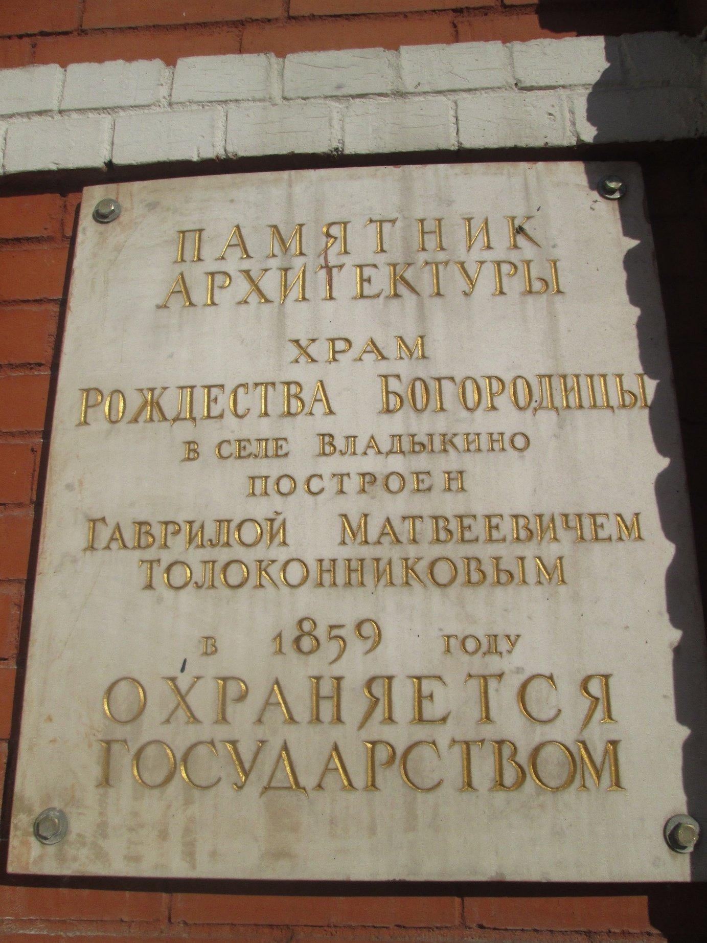 Сейчас, даже зная точные координаты храма Рождества Пресвятой Богородицы во Владыкино, найти его непросто, поскольку храм от глаз людских закрыт мостом, и на фоне этого широкого и высокого моста здание храма кажется крошечным. А ведь полтора столетия назад церковь возвышалась на горке (тот небольшой проезд, который соединяет современное Алтуфьевское шоссе с Сигнальным проездом, так и назывался – Церковная горка). Очень давно при церкви существовало кладбище. Оно было полностью уничтожено при строительстве дороги. Часть захоронений перенесли на кладбище неподалеку, у южного выхода со станции метро «Владыкино», а остальные могилы были срыты с лица земли.