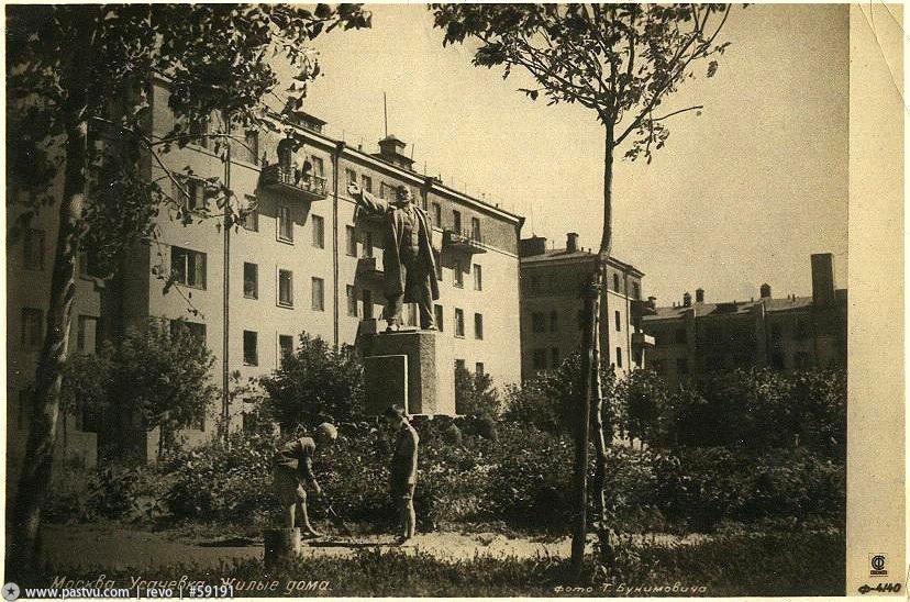Знаменитый жилой комплекс, созданный к десятилетию Октября для «старых большевиков», участников трех русских революций. Он возник на месте прежнего Усачевского рынка и пустыря. Общая градостроительная композиция комплекса решена в виде трапеции и почти симметрична относительно продольной оси, направленной с юго-востока на северо- запад (в сторону Новодевичьего монастыря).