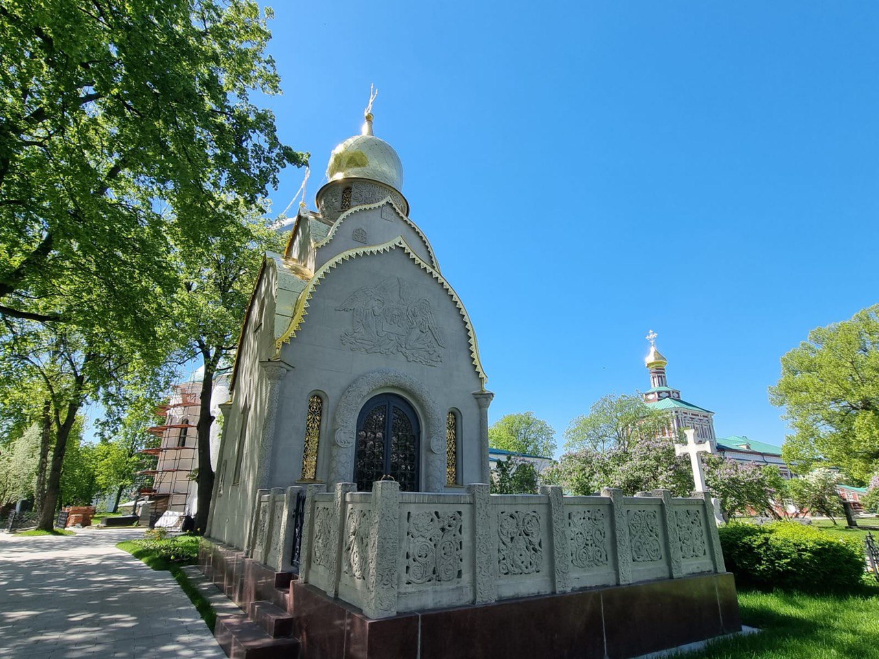 Вдовая царица Ирина (в инокинях – Александра) прожила здесь 5 лет в окружении своих келейниц и вышивальщиц. По желанию царствующего брата была похоронена в Кремле, в женском Вознесенском монастыре.