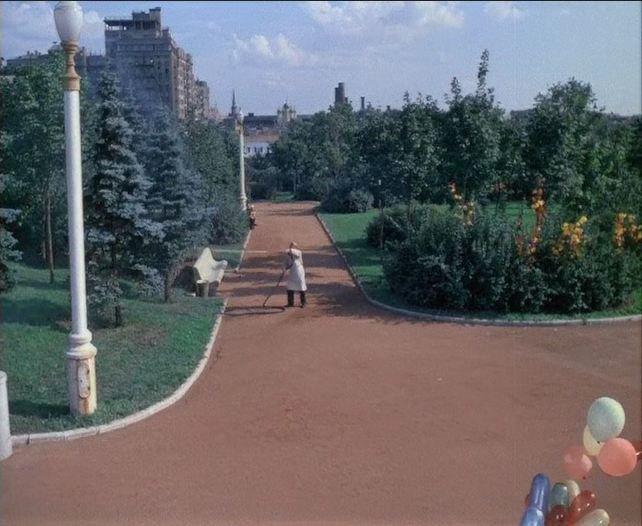 Вспомним известный детский фильм "Сказка о потерянном времени". Именно отсюда начинают погоню за злыми волшебниками «молодые старички». В кадре на заднем плане знаменитый "Дом на набережной" и сквер у бассейна «Москва». Сегодня на этом месте памятник Александру II.