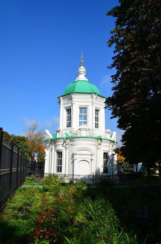 Строительство обычно датируют 1699 годом. Предположительно, к нему был привлечен знаменитый шведский архитектор Никодемус Тессин Младший, который работал над Знаменской церковью в Дубровицах. Церкви похожи размерами и элементами декора: обе небольшие, чуть вычурные, обе с четырехлепестковым планом.