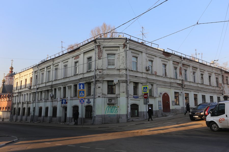 Этот дом на Хитровской площади уникален по двум причинам. Во-первых, это палаты XVII века. До сих пор неизвестно, кому именно они принадлежали, вероятно, стольнику-воеводе Бутурлину. О том, что дом настолько древний, никто не подозревал до 2004 года — тогда отвалился кусок штукатурки и стала видна большемерная кладка, характерная для середины XVII века. Если войти во внутренний двор, очень хорошо видны остатки красного крыльца, целые изразцы, кирпичи с клеймами времен царя Алексея Михайловича — все, что веками было скрыто за штукатуркой.