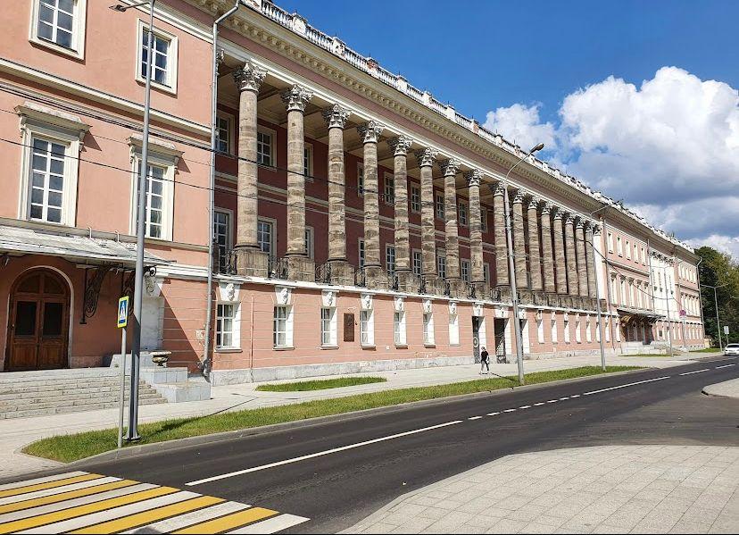 Далее пройдем по 1-му Краснокурсантскому проезду, где перед нами предстает величественный Екатерининский дворец. В начале XVIII века в этой местности были владения одного из сподвижников Петра I — генерал-фельдмаршала Федора Головина. При его наследниках дворец пришел в упадок, а после он был выкуплен для создания императорской резиденции. В 1773 году началось строительство нового дворца для Екатерины II по проекту князя Петра Макулова и архитектора Антонио Ринальди. Он был закончен в 1796 году и стал самым крупным на тот момент зданием в Москве. Отделкой фасадов и интерьеров занимался Джакомо Кваренги, а над лепниной работал Франческо Кампорези. Облик главного фасада определил Кваренги, создав уникальную в архитектуре Москвы широкую лоджию с протяженной колоннадой из 16 коринфских колонн, сложенных из серого камня. Восстановленный после Отечественной войны комплекс был оформлен Осипом Бове и передан кадетскому корпусу. В наши дни его занимают организации, подведомственные Министерству обороны. Здание дворца имеет неплохую сохранность и является прекрасным примером архитектуры классицизма.