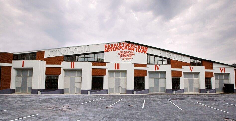 Дальше по улице Образцова находится еще одно примечательное место – Бахметьевский гараж. Это кирпичное здание со множеством ворот и эффектной белой штукатурной отделкой в плане представляет собой параллелограмм. Такая форма продиктована большим радиусом поворота английских автобусов фирмы «Лейланд», закупленных в 1925 году Моссоветом для городских перевозок. Архитектор К.С. Мельников изобрел и запатентовал для автобусов и другого транспорта особую схему въезда и выезда, так называемую «прямоточную систему» (в ней не требовались разворотные площадки), преимущества которой ему пришлось доказывать на практике. В гараже, построенном в 1926-1928 годах, площадью 8000 кв. м разместились машиноместа для ста двенадцати автобусов, восемь рядов по 14 мест в каждом. Благодаря изяществу металлических конструкций, которые сделал великий русский инженер Владимир Шухов, просторный интерьер поражает своей высотой и гигантским масштабом, тогда как снаружи сооружение кажется сравнительно низким. Сейчас в здании находится Еврейский музей и центр толерантности.
