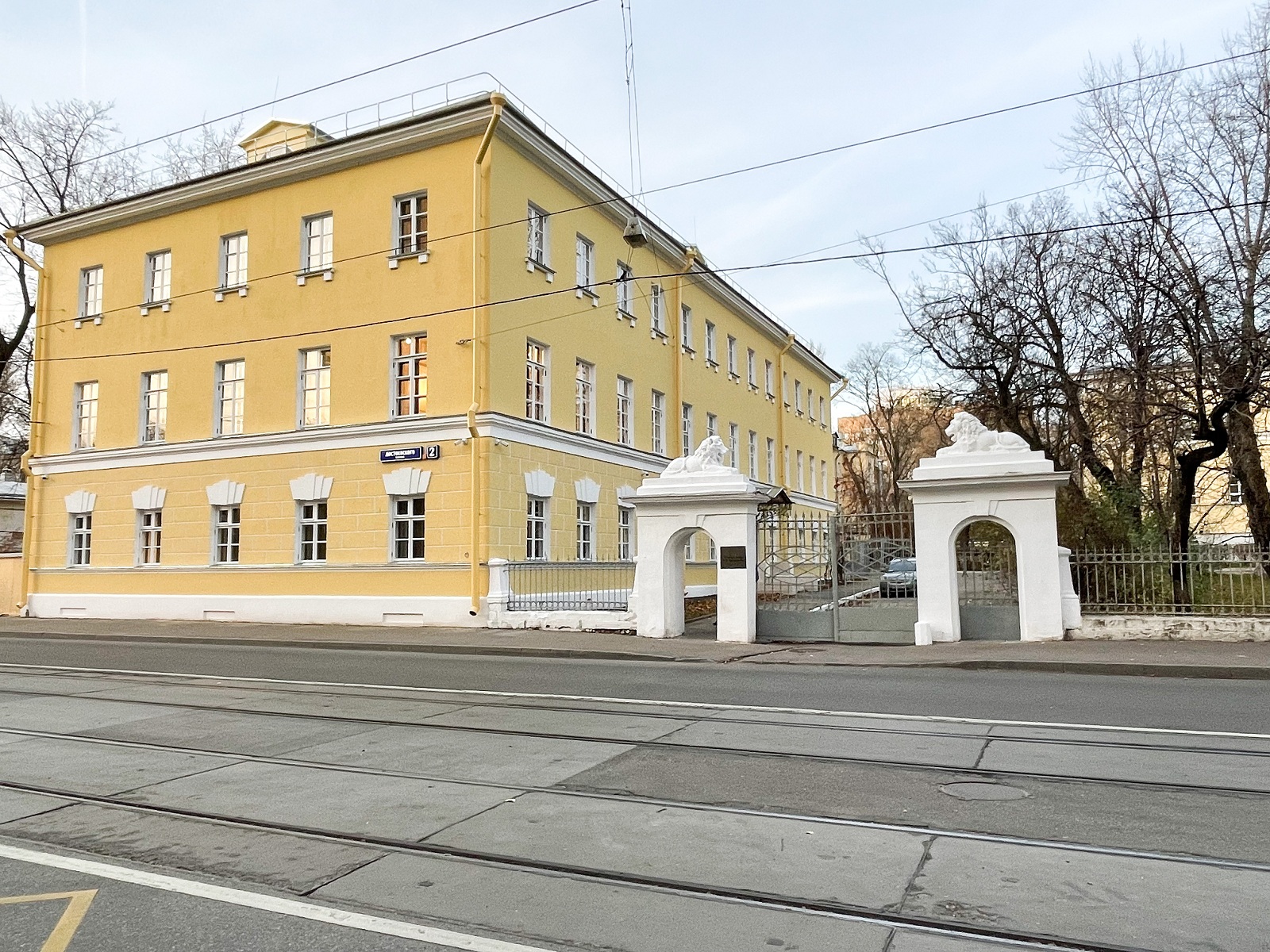 Далее пройдем по улице Образцова, где по адресу дом 9 находится величественное здание Московского инженерного училища Ведомства путей сообщения (совр. Российский университет транспорта). В конце XIX в. интенсивно развивается российская железнодорожная сеть. К концу столетия ее протяженность составляла более 53 тысяч километров. Подготовка специалистов-железнодорожников велась в Петербургском институте инженеров путей сообщения еще с появления первой железной дороги в 1837 г. С 1969 г. в городах России стали открываться железнодорожные училища, где готовили средний технический персонал – машинистов, дорожных мастеров и других специалистов. Однако нехватка инженерно-технических кадров по-прежнему стояла довольно остро. По инициативе Министерства путей сообщения 23 мая 1896 г. было учреждено Императорское Московское инженерное училище. Для строительства здания Инженерного училища был выделен большой участок земли на месте бывших огородов на Бахметьевской улице. Проект был выполнен петербургским архитектором И. С. Китнером. Торжественная закладка здания состоялась 14 июня 1897 г. А в 1901 г. училище выпустило первых инженеров. Сегодня здание продолжает выполнять свою функцию: здесь по-прежнему готовят специалистов транспортной отрасли.