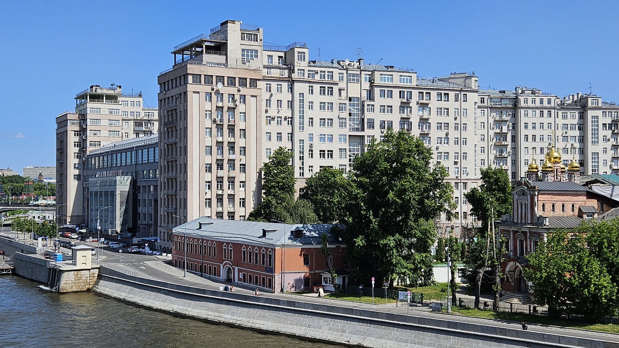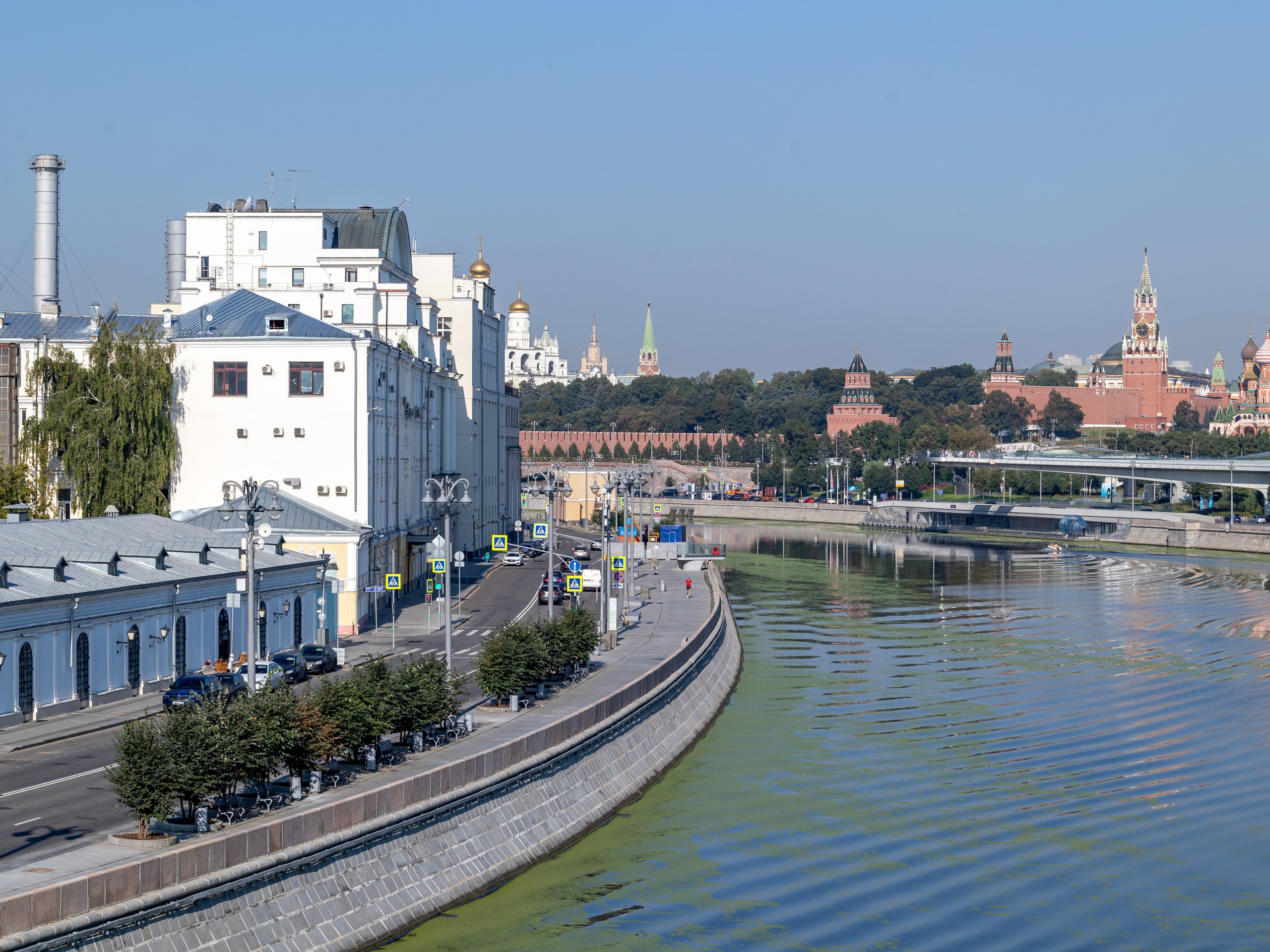 Кремлевская – первая каменная набережная Москвы – с давних времен запечатлена на всех видовых открытках города, по сей день являясь самым узнаваемым символом столицы. Набережная Москвы-реки, растянувшаяся вдоль стен Кремля, расположена между улицей Ленивка и Васильевским спуском. Протяженность набережной составляет около одного километра. С Кремлевской набережной можно хорошо рассмотреть южную стену Кремля с ее уникальными старинными башнями, среди которых Водовзводная, Тайницкая и Петровская, а также Красную площадь и Васильевский спуск.