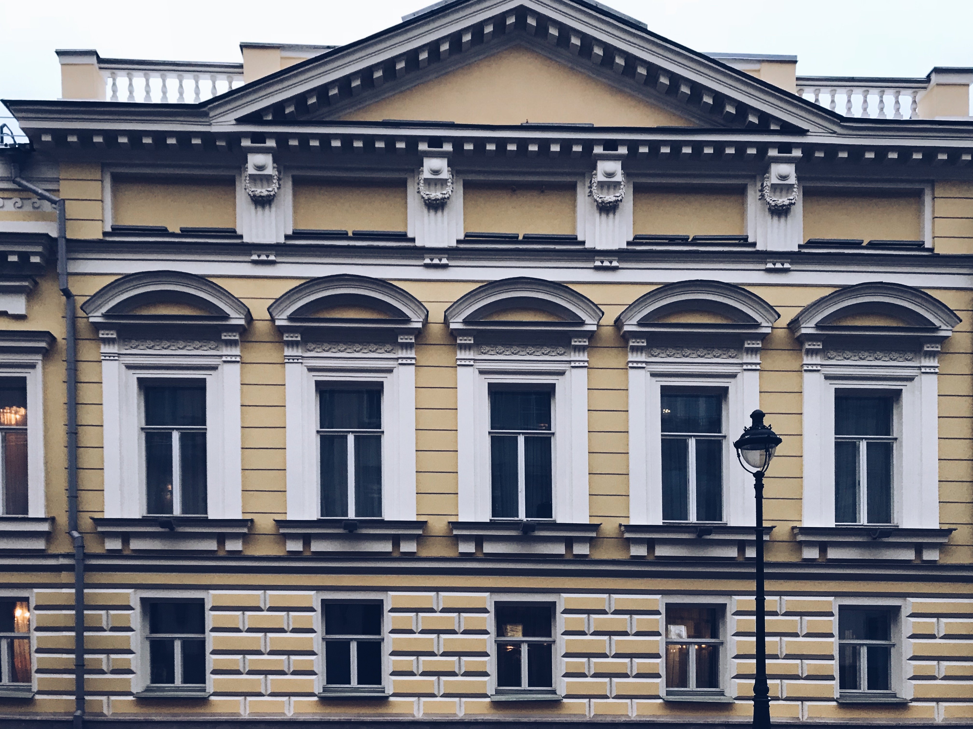 Дальше направимся на Большую Никитскую улицу, здесь через дорогу отреставрированный в 2015 году Главный дом усадьбы Глебовых-Стрешневых-Шаховских занимает театр Геликон-опера.