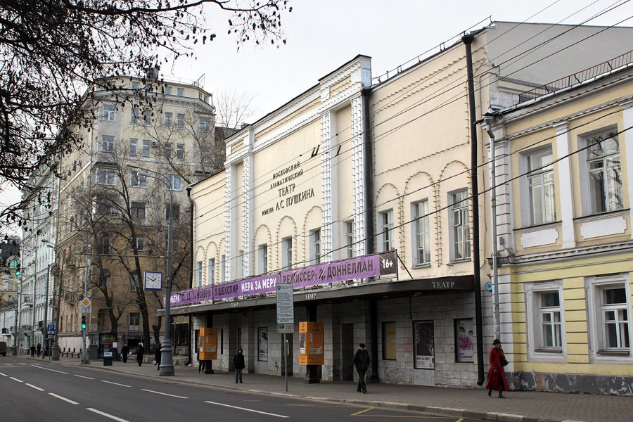 Прогуляемся далее по бульвару. Напротив друг друга здесь располагаются сразу два театра: МХАТ имени Горького, разместившийся в здании 1972 года постройки, и театр имени Пушкина, занимающий старинный особняк, приглянувшийся режиссеру А.Таирову.