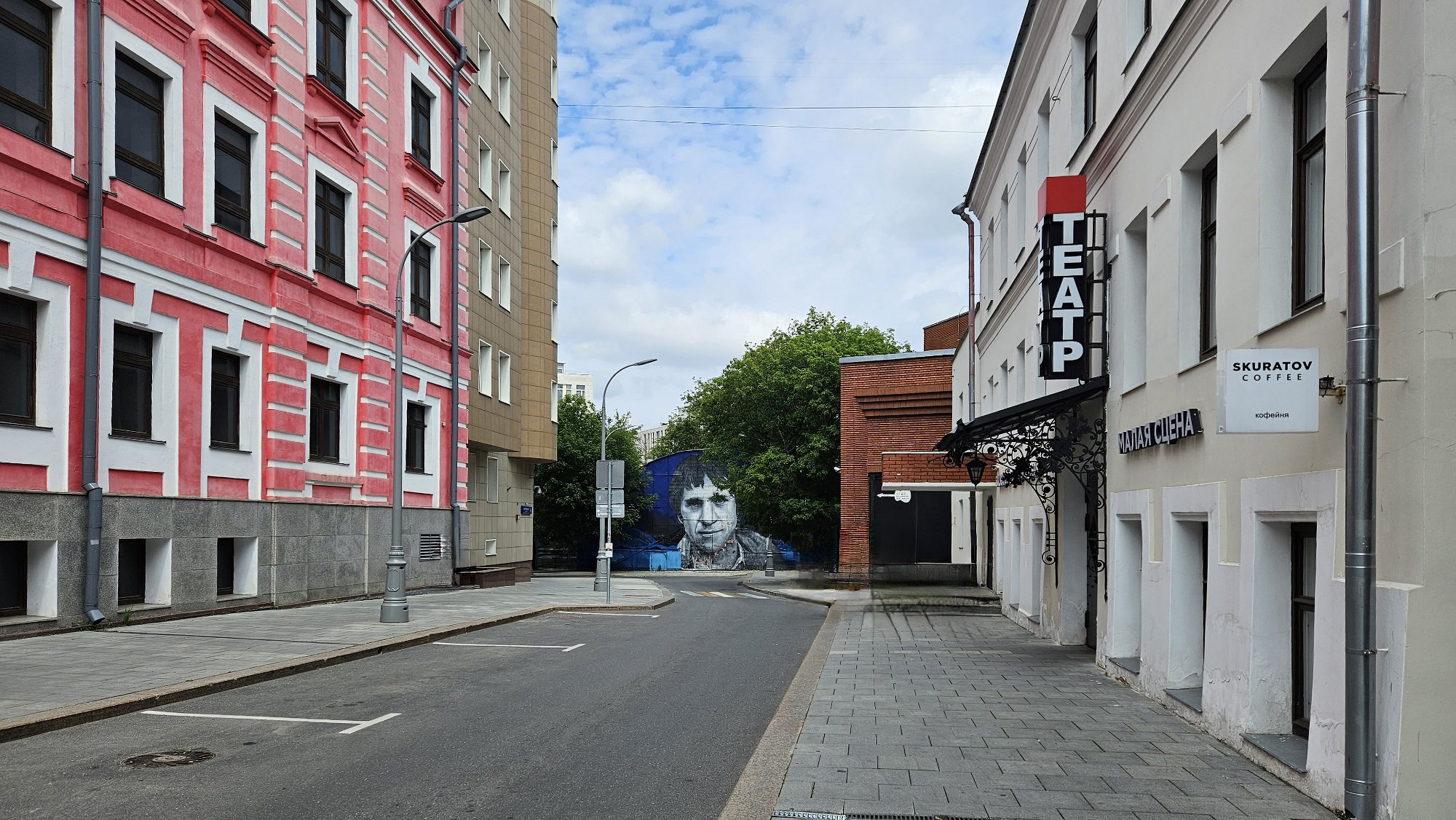 Двигаемся левее от театра, поворачиваем и идем прямо, оказавшись на улице Высоцкого.