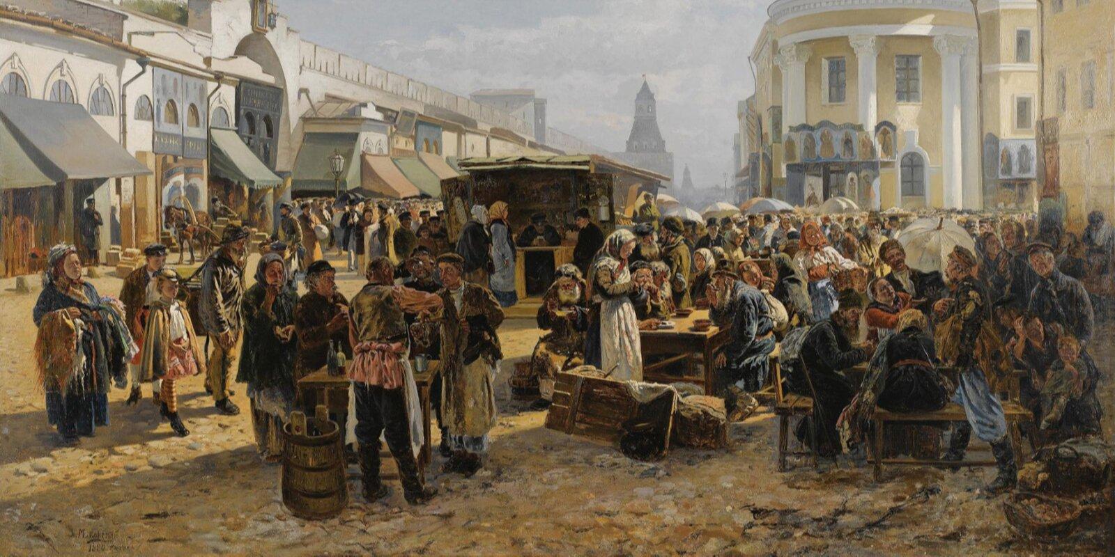 Торговля в Москве XIX века — это не только красивые пассажи и маленькие лавки, куда заходили за дорогими вещами и деликатесами. Это еще и рынки-толкучки и торговые ряды, жившие по своим законам. Кто, как и чем торговал на Старой и Новой площадях, Сухаревском рынке и Верхних рядах на Красной площади — в материале mos.ru.