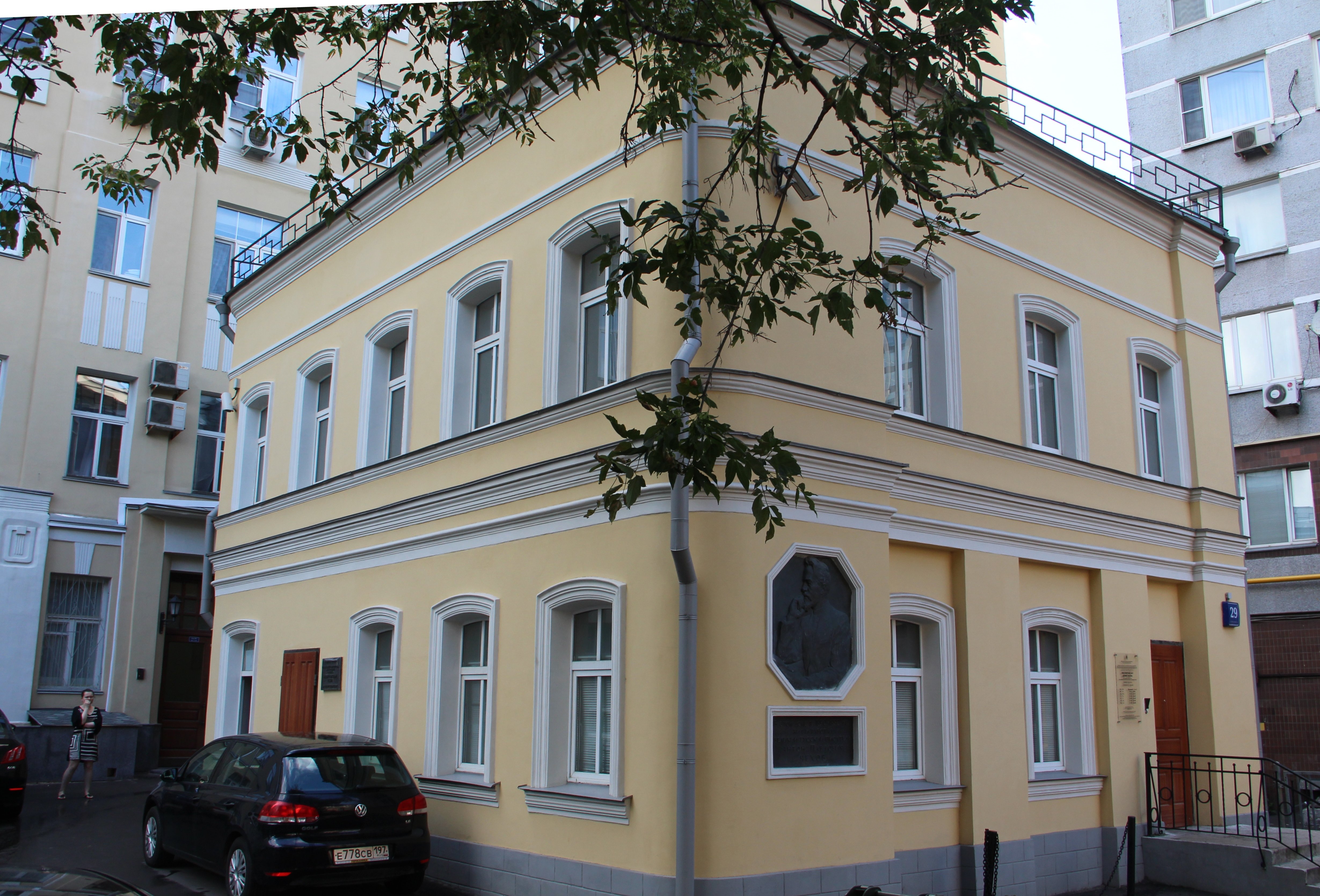 Пересекаем сад, выходим в Успенский переулок и по нему движемся к Малой Дмитровке, остановимся прямо на углу, у дома 12.