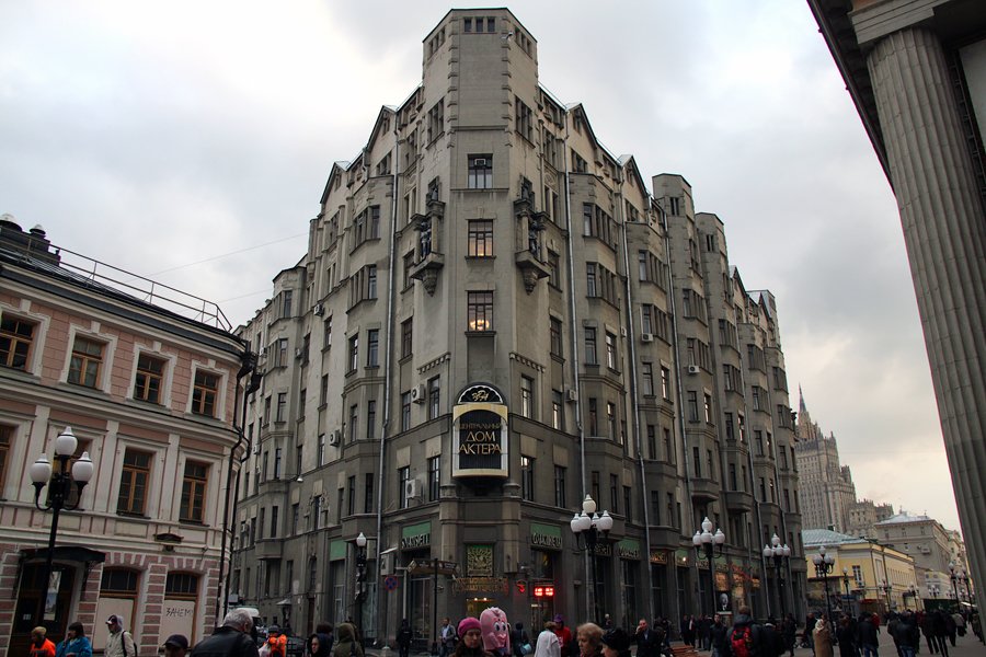 И мы переходим через дорогу - к Дому актера - дому с рыцарями. Так сложилось, что я успела застать тот Дом актера, который был на улице Горького, который сгорел. Переезд сюда сначала был очень тяжелым. Потому что здание это вообще очень странное, мистическое, с этими рыцарями, про него много всего рассказывают. Но для нас самое главное было то, что оно очень номенклатурное - сцена, на которой проходят все вечера, она была сделана под доклады. Само по себе это помещение, эти коридоры - это абсолютно чиновничьи помещения. И только такой человек, как Маргарита Александровна Эскина, невероятная Маргарита, просто Булгаковская, с этим немыслимым помелом, на котором она умела носиться и все успевать, даже уже будучи практически привязанной к инвалидному креслу, энергия ее - она же потомственный человек, династийный - сначала был ее отец директором дома актера. Это какая-то непонятная любовь к артистам, желание сделать для них все, из последних сил, абсолютная забота о стариках. Нас приучили, еще будучи студентами - мы выступали для стариков, которых привозили из домов престарелых, артистов всяких, просто перед стариками, которые сюда приходили. У стариков на новый год, на день театра всегда были подарки, для них устраивались вечера, чаепития с немыслимыми пирожными…