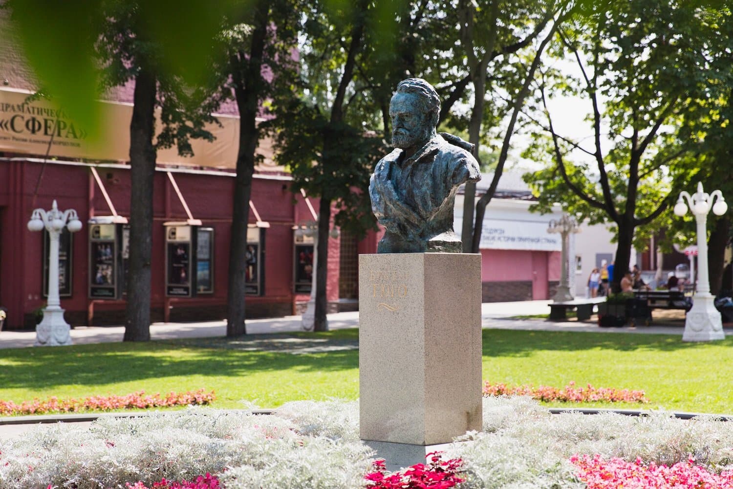 В нем расположены три театра - «Новая Опера», «Сфера» и «Эрмитаж», летняя эстрада сада, «Щукинская сцена», беседки, памятники Данте Алигьери, Виктору Гюго, фонтаны и другие архитектурные формы. В ходе прогулки москвичи узнают больше о зданиях и объектах, расположенных здесь.