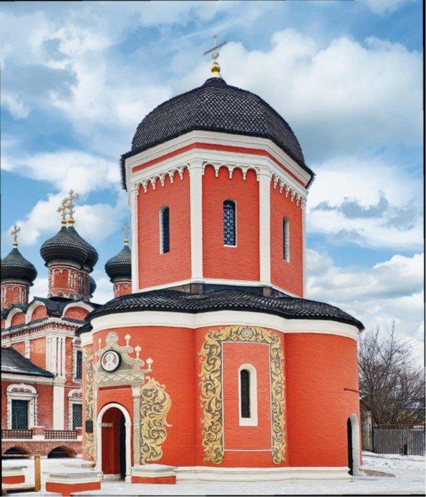 Прогуляемся по территории к Церкви Петра Митрополита. Церковь Петра Митрополита – самый древний храм Высоко-Петровского монастыря, возведенный в 1514–1517 годах Алевизом Фрязиным Новым, зодчим Архангельского собора Кремля. Это один из наиболее ранних в русском зодчестве столпообразных центричных многолепестковых храмов. В 1690 г. собор был частично перестроен в стиле нарышкинского барокко. В 2018 году церковь Петра Митрополита стала лауреатом конкурса Правительства Москвы "Московская реставрация".