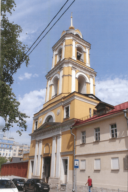 Прогуляемся по территории к колокольне. Трехъярусная колокольня с храмом священномученика Евгения Херсонского (архитектор Н.И.Козловский) построена в классическом стиле в 1835-1836 гг. на месте центрального входа в монастырь: в ее нижнем ярусе был создан главный вход в монастырь - Святые врата. Под колокольней имеется сводчатый подвал. Колокольня ансамбля Рождественского монастыря в 2017 году стала лауреатом конкурса Правительства Москвы "Московская реставрация" в номинации "Лучшая организация ремонтно-реставрационных работ".