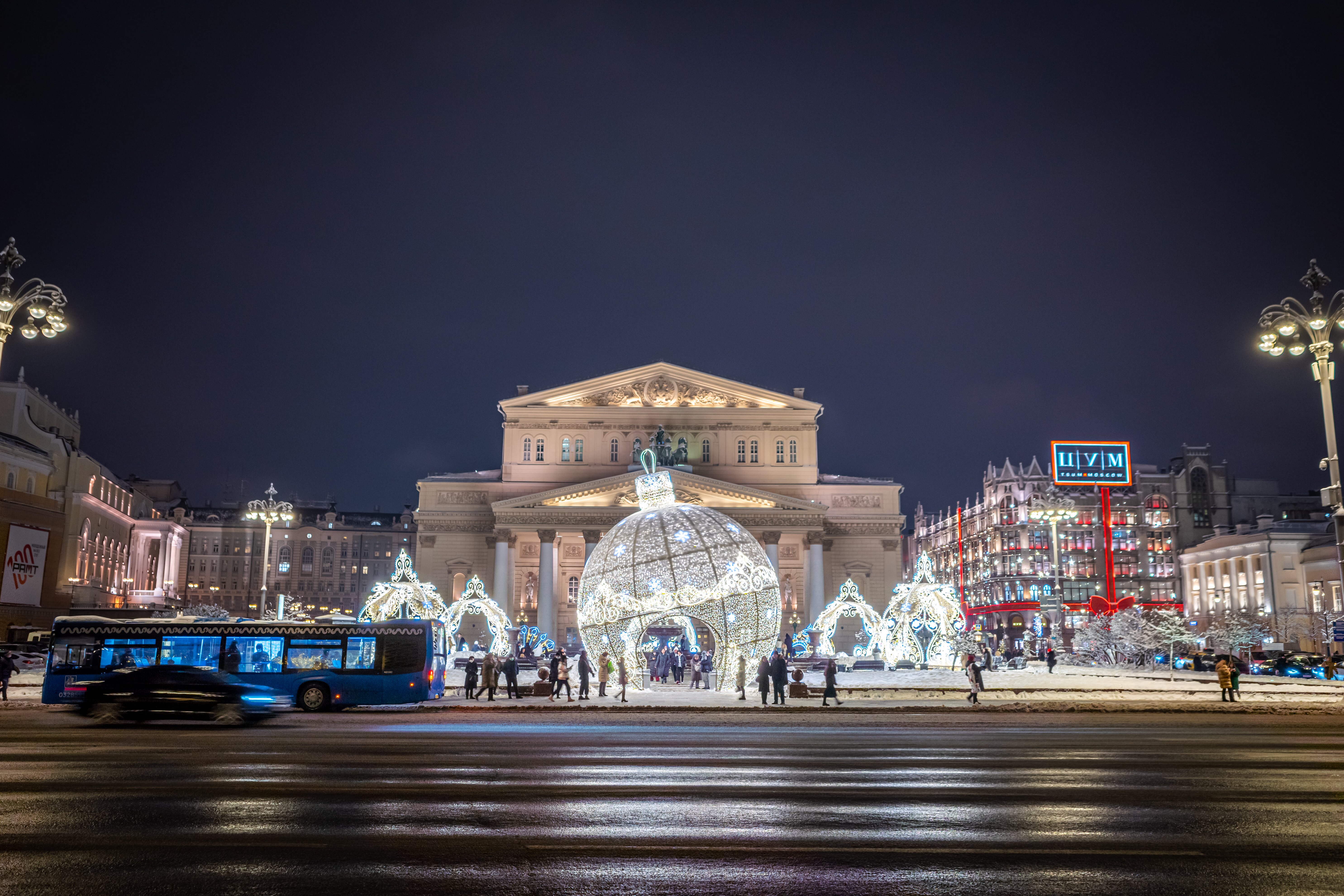 Вечером Мимино томится в ожидании Ларисы Ивановны около второй колонны Большого театра, где назначил свидание. К нему присоединяется и Рубик. Актеры, одетые в легкие плащ и куртку, дрожат от холода. Это не игра — московские эпизоды снимали в 30-градусный мороз. Режиссер водил Мкртчяна и Кикабидзе к себе домой — согреться и пообедать. Там же, в эти обеденные перерывы, придумывались и некоторые новые сцены.