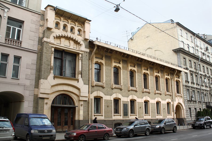 Образец настоящего модерна — двухэтажный особняк Моисея Саарбекова. Построенный в 1899–1900 годах по проекту Льва Кекушева при участии его помощника Сергея Шуцмана, он стал одним из самых ранних московских построек в этом стиле. Моисей Саарбеков был богатым купцом, занимался благотворительностью, знал несколько европейских языков и, вероятно, живо интересовался всеми новыми веяниями в Европе, в том числе архитектурными.
