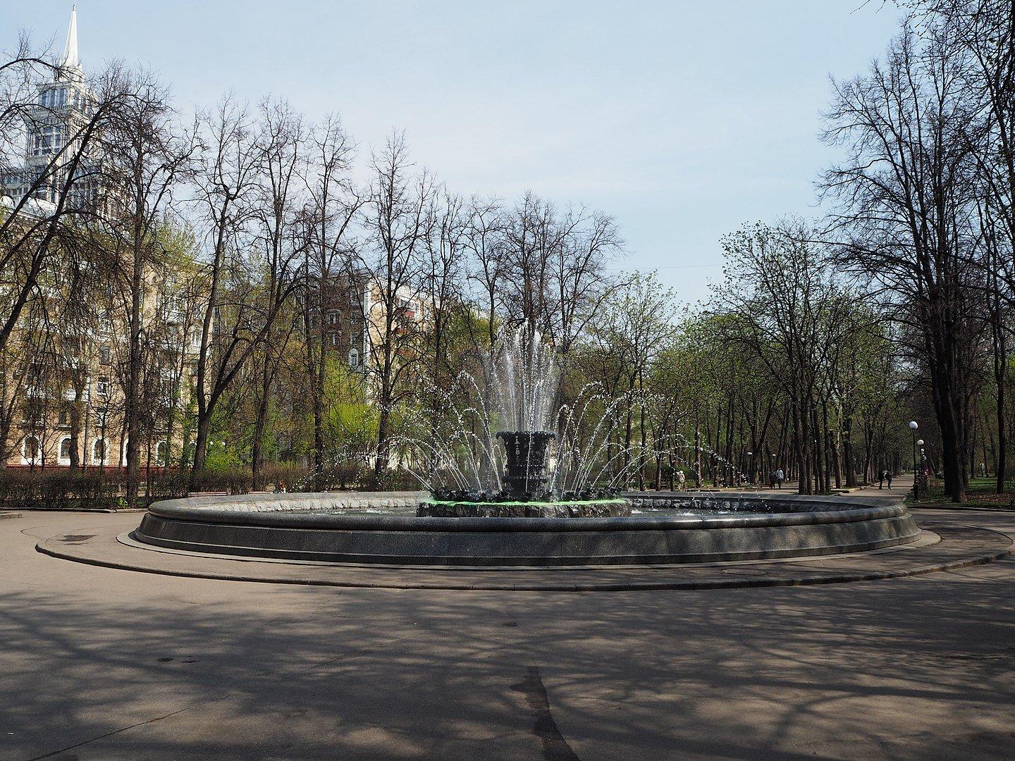 Можно проехать прямо сквозь «сталинский квартал», а можно обогнуть слева, по Новопесчаной улице – этот путь пролегает как раз вдоль самой красивой фасадной части. Буквально через три дома, после пересечения со 2-ой Песчаной улицей, мы въедем в сквер Дивизий Московского Народного Ополчения и сможем полюбоваться фонтаном «Георгиу-Деж», который в 50-е годы был одной из «визитных карточек» Москвы – его «открыточное» изображение обязательно включали в фотоальбомы с лучшими видами столицы.
