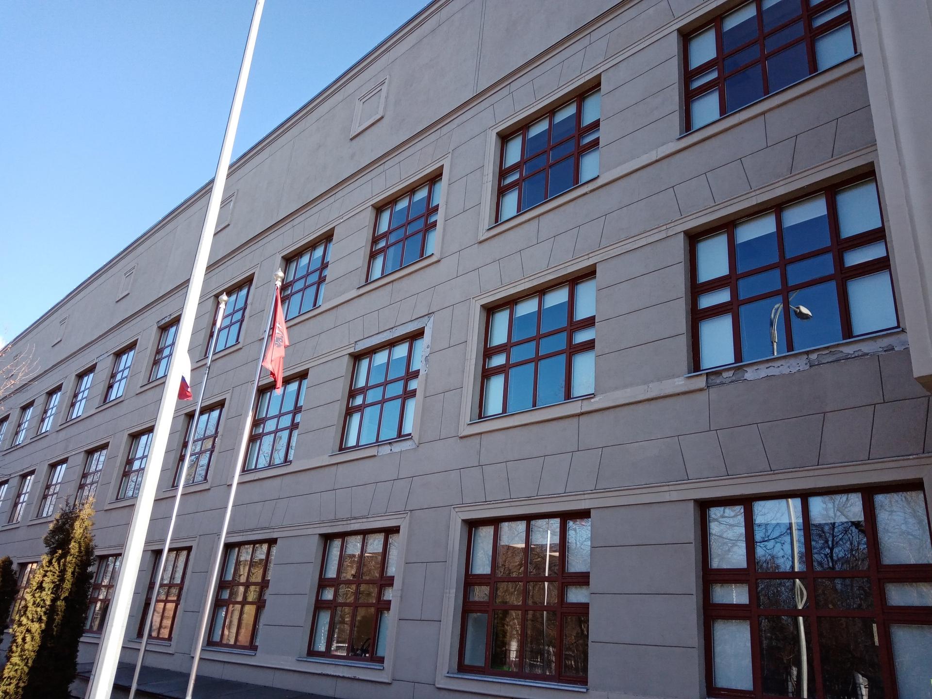 В 1935 году недалеко от старой, деревянной, по проекту архитекторов И. Звездина и А. Аркина была построена новая школа. Ее огромная территория, окруженная кованой оградой, была настоящим государством - с землями, службами, строениями, законами и порядками. Добротное здание, облицованное крупным светлым кирпичом, - яркий пример постконструктивизма 30-х годов - стояло в окружении высоких деревьев. Солидные парадные двери с массивными ручками пропускали каждый день сотни учеников и учителей, спешивших по утрам на уроки.