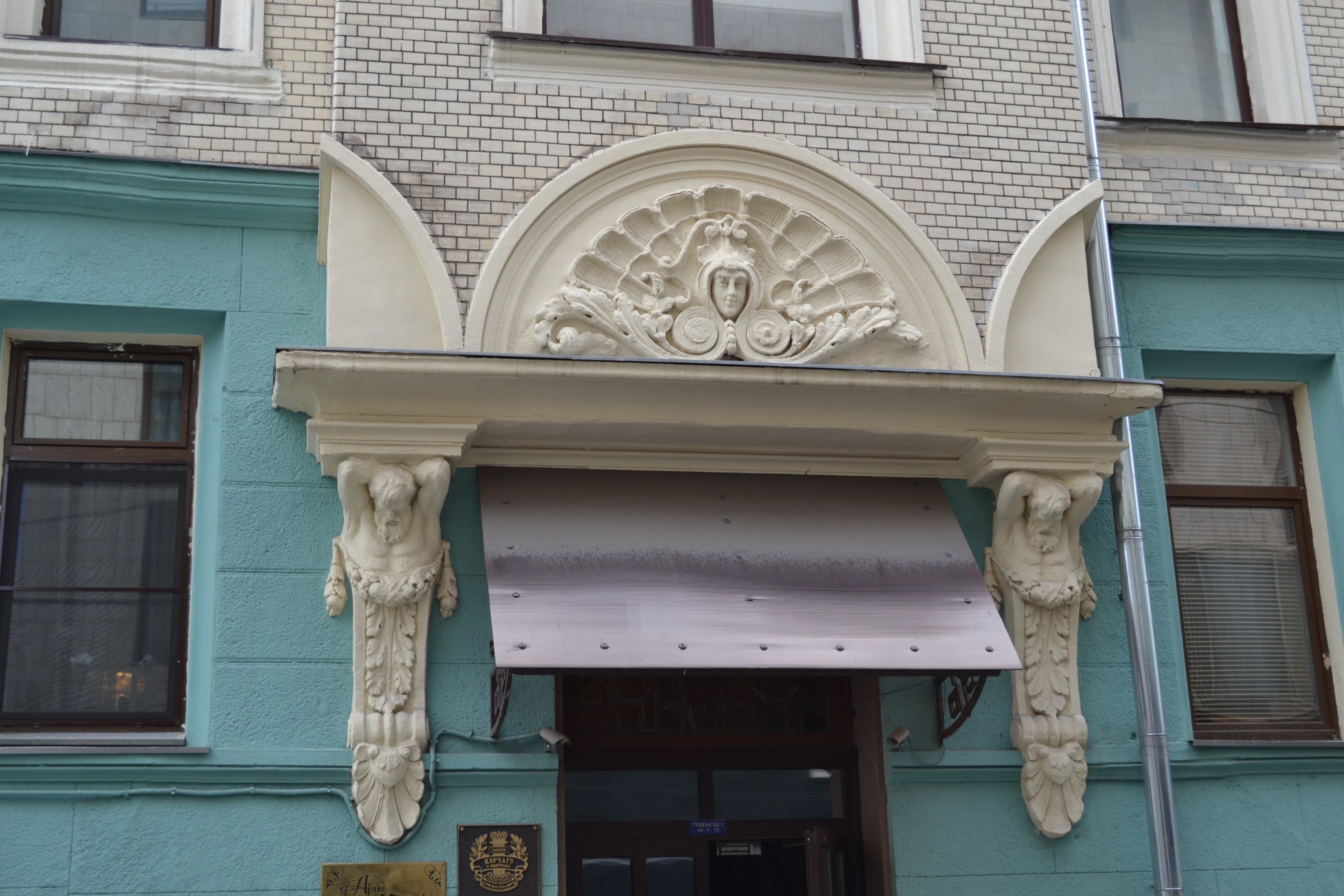 Буквально напротив церкви Большое Вознесение находится комплекс доходных домов Д.Элькинда: один из них по адресу: Столовый переулок, 4-6, другой - Мерзляковский переулок, 15, и самый большой, которым и приглашаю полюбоваться – на Большой Никитской, 31. Однако, сначала упомяну, что все они построены по проекту архитектора Н.Д.Струкова. И, как мне кажется, нуждаются в хорошей реставрации.