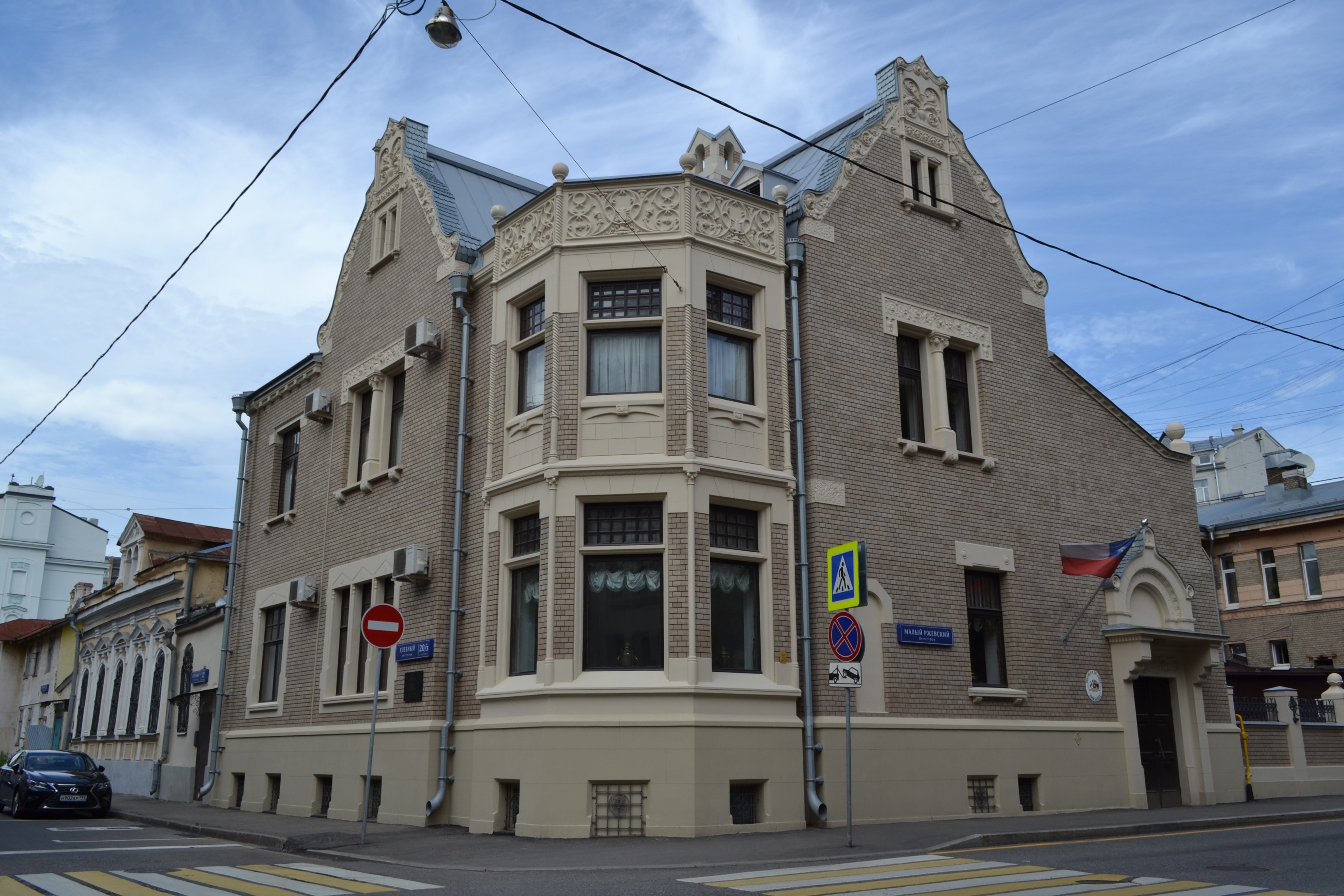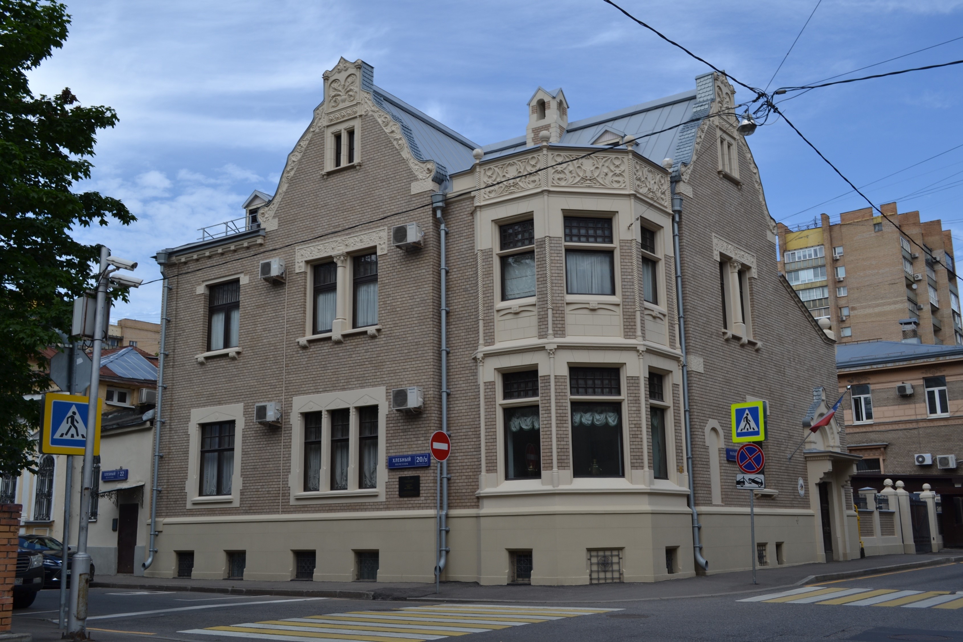 И еще один дом в Хлебном переулке, расположенный практически напротив дома Верстовского, определенно заслуживает внимания. История его происхождения имеет целых три версии: первая говорит о том, что он был построен для семьи славянофилов Самариных, главный дом которых находился на соседней Поварской улице; вторая – что это был дом церковного причта (какого и при какой церкви?), а третья повествует о том, что в доме находилась мастерская архитектора А.К.Боссе. Не менее любопытно, что на Яндекс.Картах обнаружить адрес этого краснокирпичного домика, украшенного очаровательными изразцами, не удалось! По одним сведениям, это дом № 29, по другим - № 31. На самом же доме имеется табличка только с названием переулка…